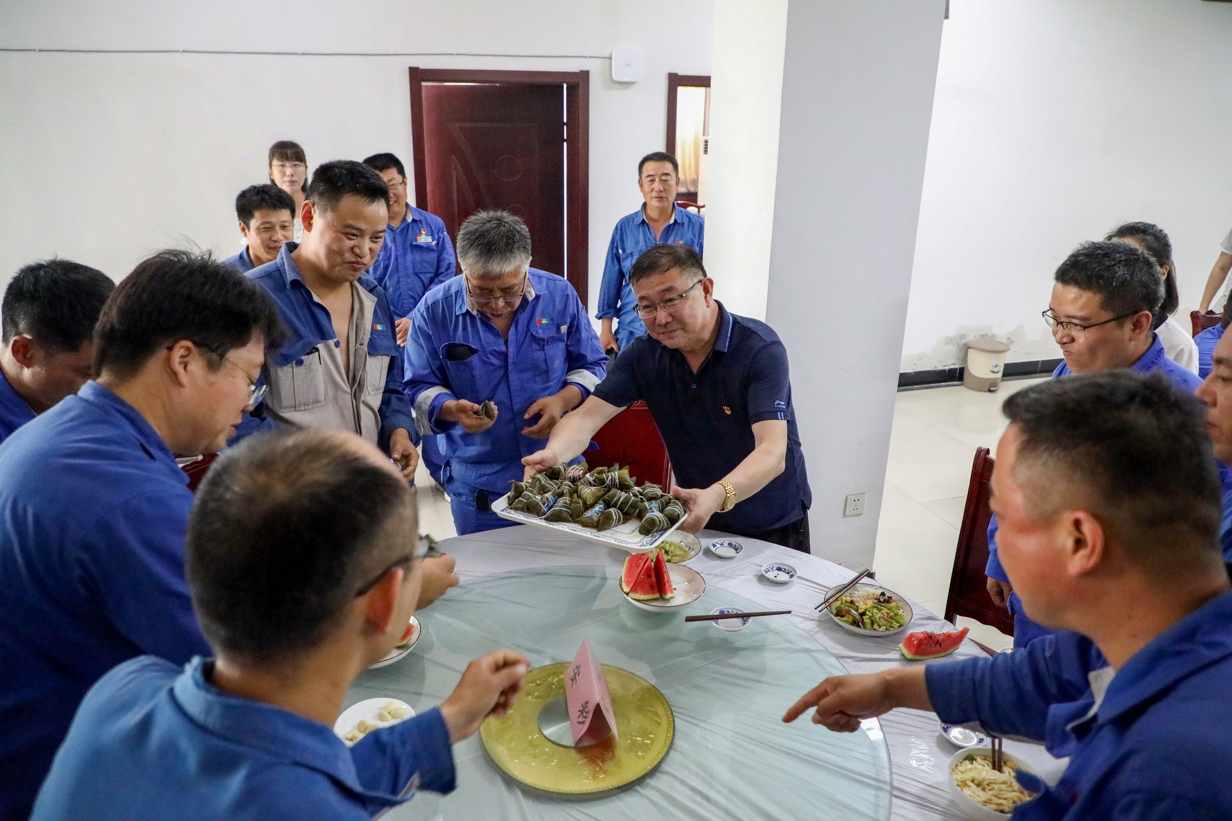 為搶抓工期、趕超進度,安彩焦作項目部建設(shè)人員的端午節(jié)將在堅守崗位中度過。中午,呂書記來到餐廳,為前來就餐的職工送上粽子,把公司黨委和工會的溫暖送到職工們的心坎上,讓每一位遠在異鄉(xiāng)的職工都感受到公司“大家庭“的關(guān)心和節(jié)日的問候,大家深受感動和鼓舞。