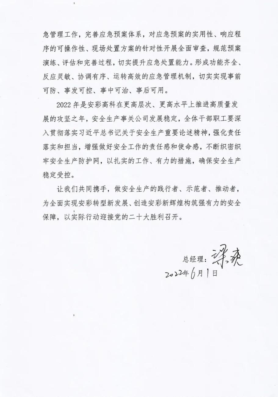 遵守安全生產法 當好第一責任人——致安彩高科全體員工的安全生產倡議書